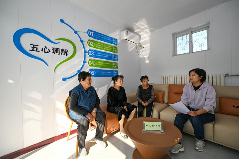 正在天津市宁河区芦台街道金华社区,社区党总支副吴蕊(左一)就社区设备安拆问题为社区居平易近进行解答(2024年10月11日摄)。金华社区积极践行新时代“枫桥经验”,将原社区居委会闲置用地提拔成为联络群众的下层分析管理阵地——“解铃小院”。(记者 孙凡越/摄)!